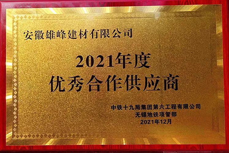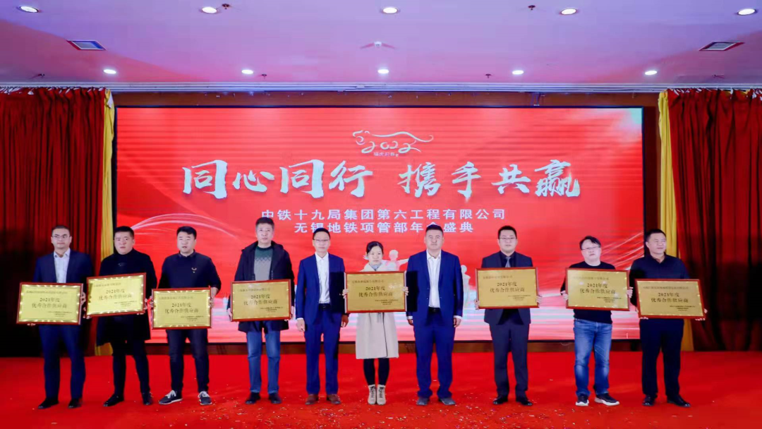2021年12月30日中鐵十九局集團第六工程有限公司無錫地鐵項管部年會盛典在無錫隆重召開,會上宣布安徽雄峰集團成為中鐵十九局集團有限公司優(yōu)秀合作供應商及戰(zhàn)略合作伙伴并頒發(fā)了相關榮譽證書。